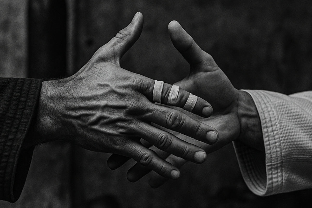 Everything you see as a part of our brand, whether content on our website or social media, or our apparel itself, is either original or appropriately licensed for use. That also means we have real relationships with the estates of the athletes featured on our apparel. All of our artwork is human-derived, not AI generated, in fact, the photo you see to the left is an early iteration of our Juji Gatame design. And no, AI did not write this (feel free to run a scan)!